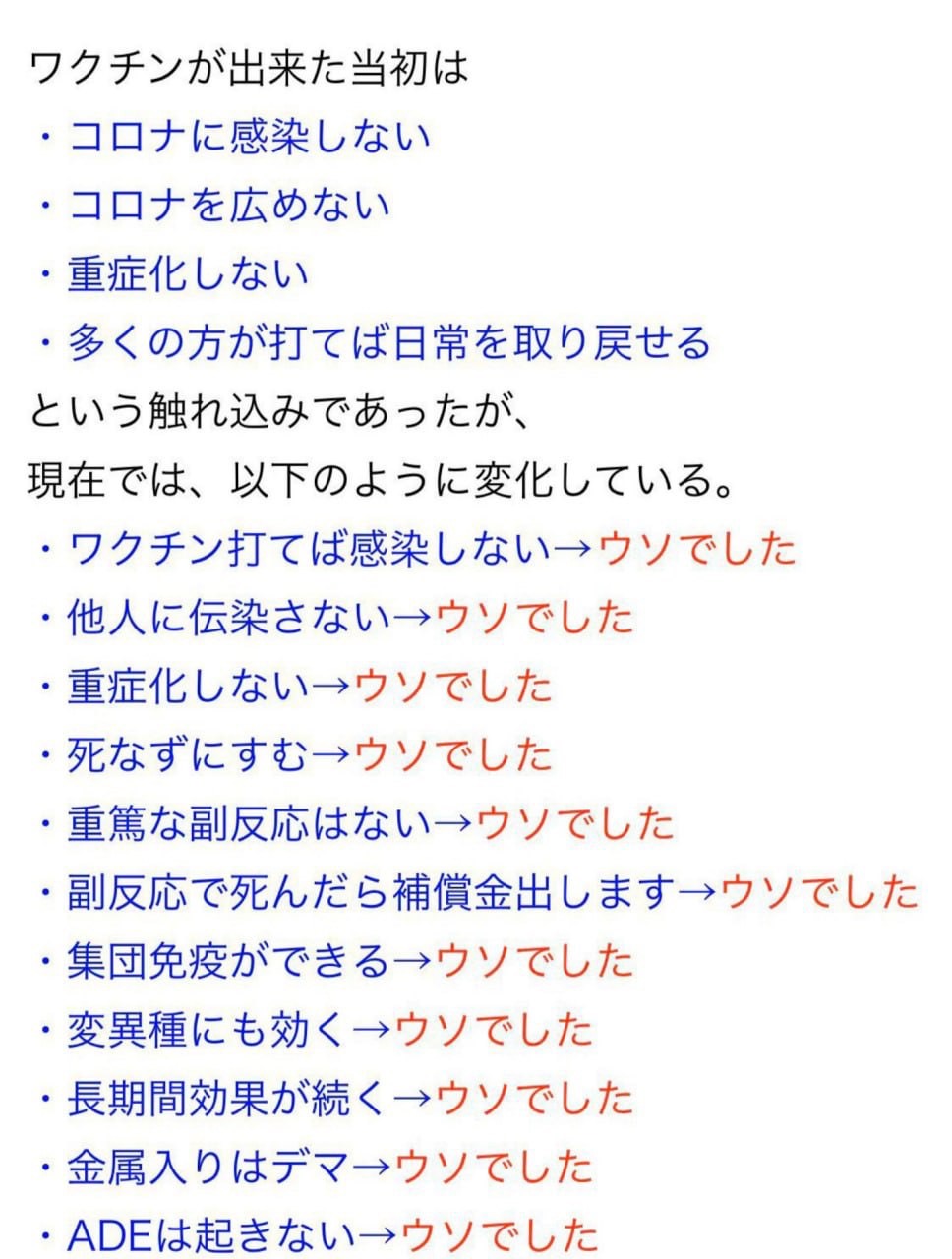ワクチンは嘘の連発でした。
