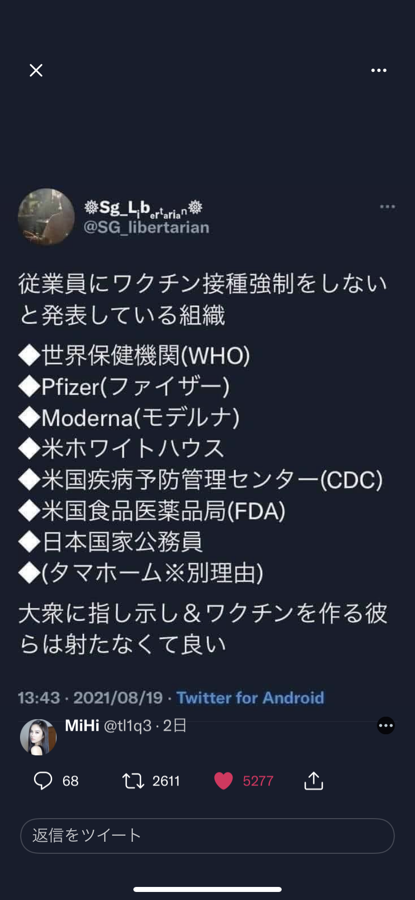 ワクチン強制なしの組織